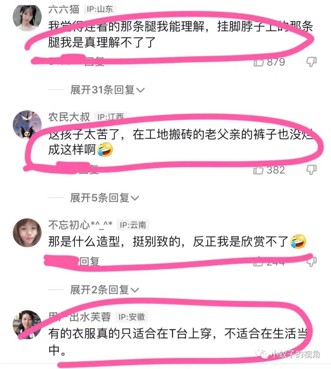 还有时尚的网友说:有的衣服真的只适合在T台上穿,不适合穿在生活当中。