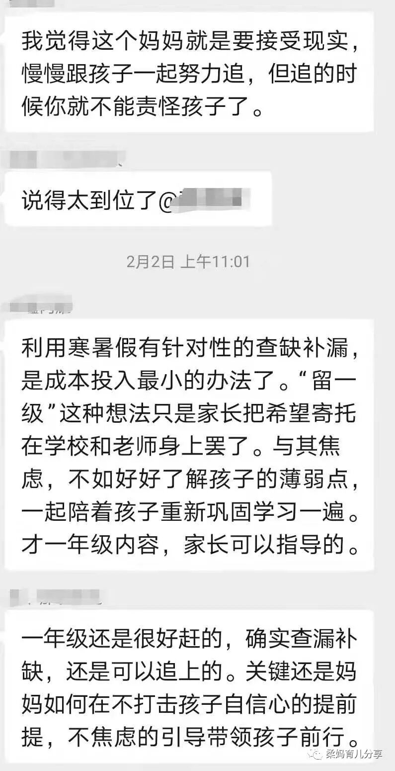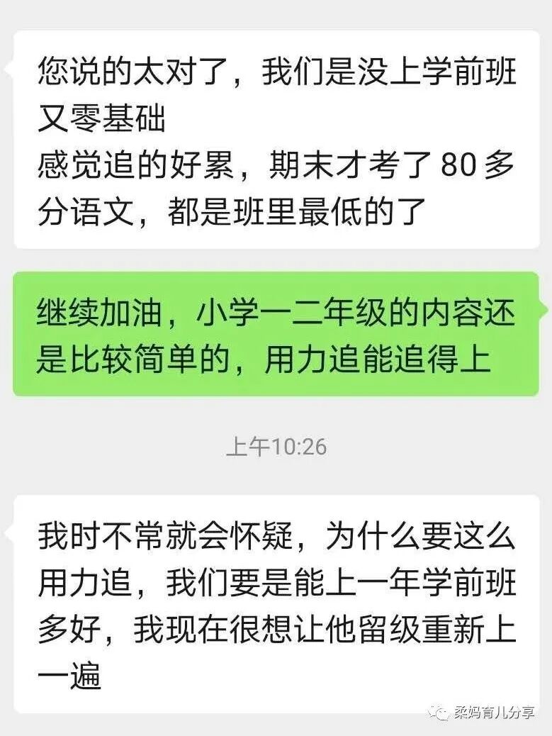 因为她家俩男娃都是零基础进入小学,麻麻带娃们奋力追赶了一个学期后,语文成绩依然没有达到麻麻满意的程度,麻麻陷入了自我怀疑——这样的追赶究竟有没有意义?还要不要继续?要不要让娃留级?