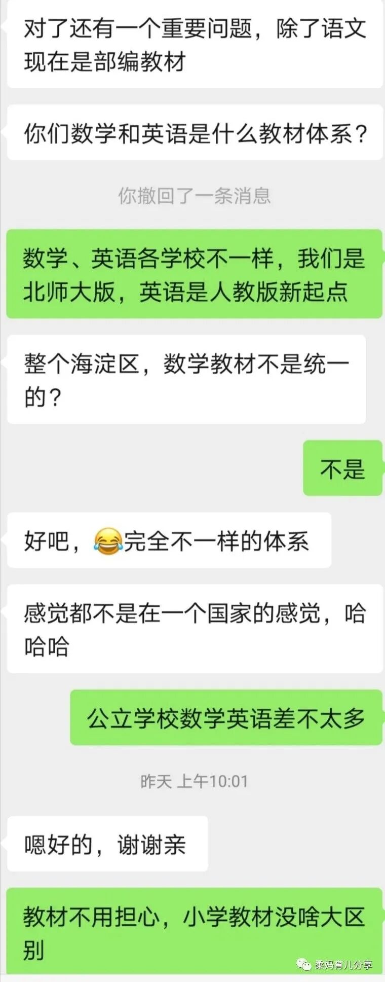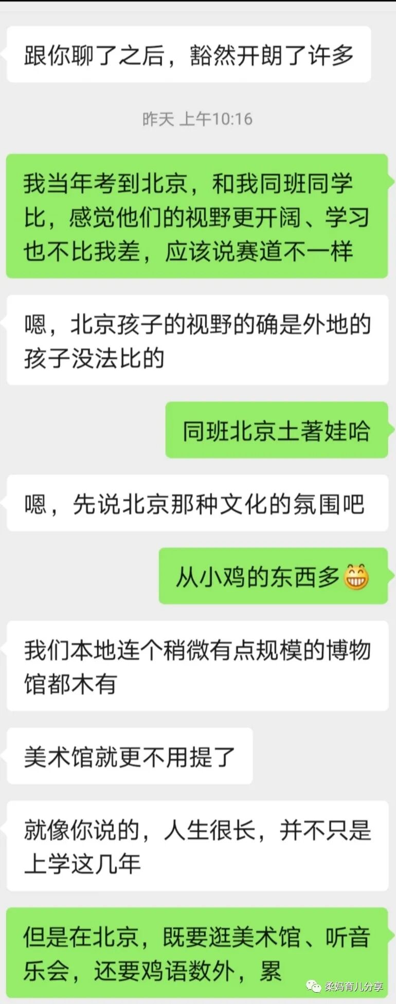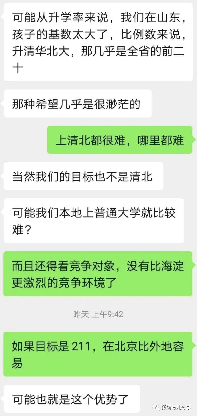 我把我们的把记录贴在这里,原生态展示一下一个宜居城市的母亲和一个海淀母亲的对话。看了之后,你有什么感觉,来留言说说吧~