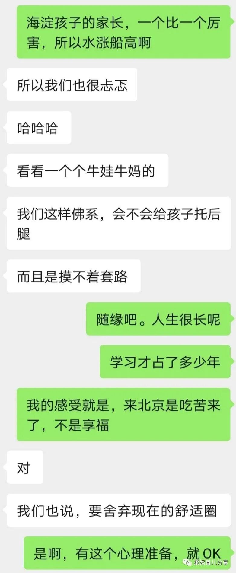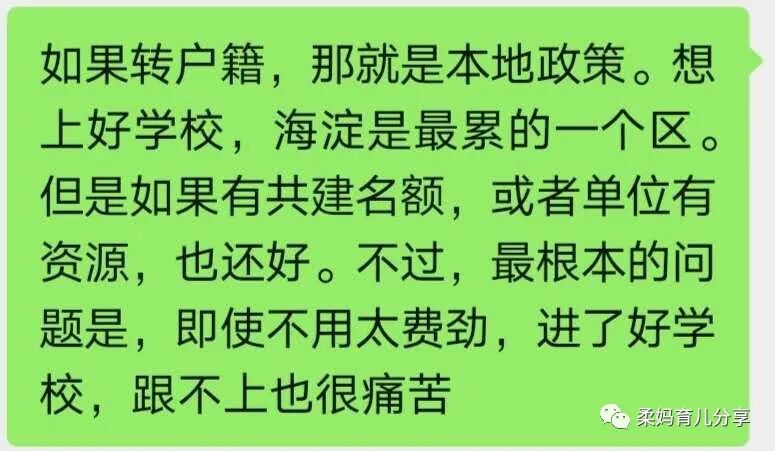 她一直在柔妈的育儿群里,平时看群友聊天,对北京教育尤其是海淀教育多少有些了解,但一旦面临真正的选择,仍然有各种疑虑和担忧。