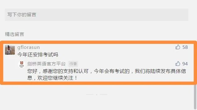 总之,这个考试还会继续存在。如果觉得这个推测还不够有说服力,那我们再来看上面通知后的唯一一条留言,这条显然是官方精选的: