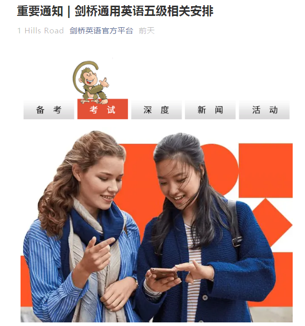 在教育部考试中心官网发布不再承办MSE考试的公告当天,剑桥英语考评部的官方微信账号“剑桥英语官方平台”就发布了一条消息: