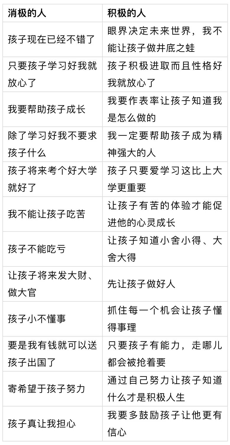 好的教育,应该是父母通过孩子这面镜子,不断发现自我、修正自我、挖掘自我,并用新我来为孩子做示范和表率。父母的教育方式,对孩子的性格发展有着很大的影响!积极思维的人,容易培育出积极思维的孩子;消极思维的人,容易造就消极思维的孩子。