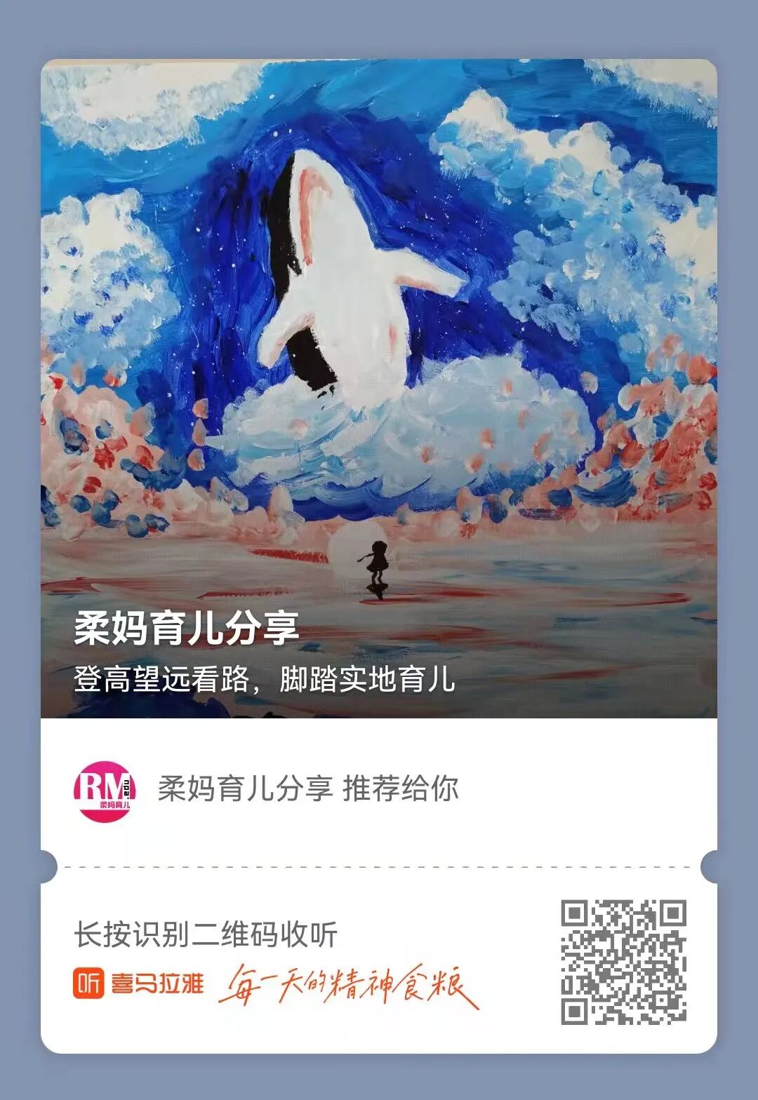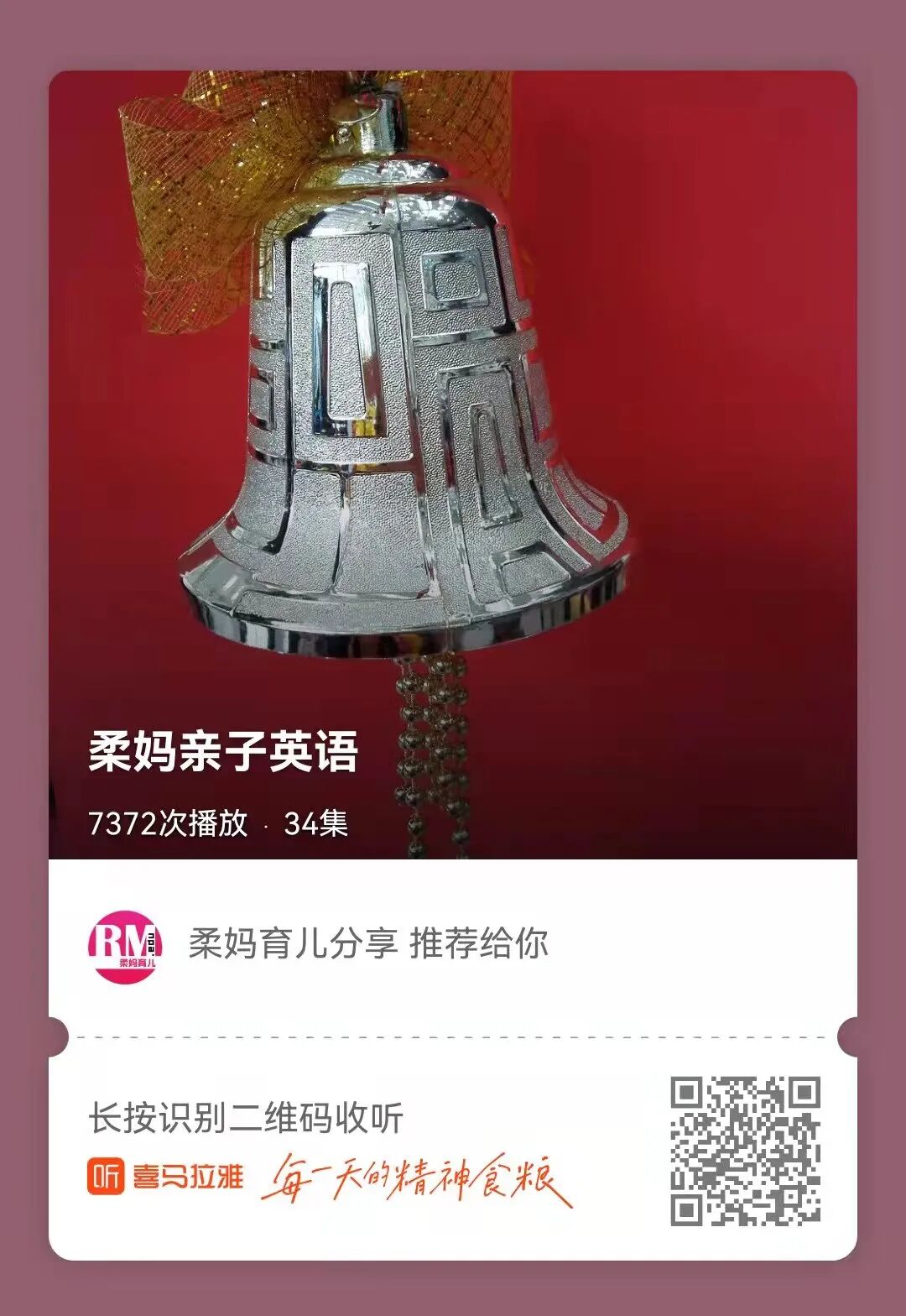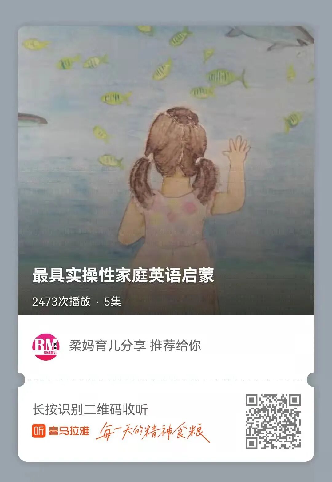 以前没正式介绍过,很多亲可能还不知道,在喜马拉雅,柔妈育儿分享有5个专辑,收录了柔柔从3岁以来的英语启蒙足迹,柔妈的一些讲座,以及我们二人的亲子英语。