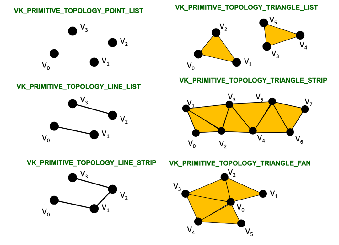 VK_PRIMITIVE_TOPOLOGY_TRIANGLE_STRIP VK_PRIMITIVE_TOPOLOGY_TRIANGLE_FAN VK_PRIMITIVE_TOPOLOGY_LINE_LIST_WITH_ADJACENCY