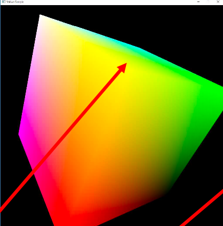到这儿我们就绘制出一个带有不同颜色顶点的立方体:
