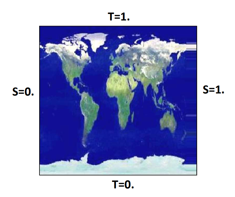 纹理坐标:我们使用S,T来表示纹理对象中的纹素位置。S,T也可以用U,V来表示,纹理坐标有时也称UV坐标。