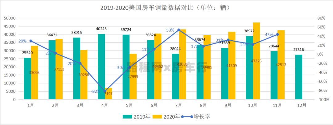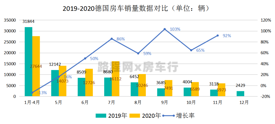 尽管在疫情影响之下,前两季度甚至面临停工停产的问题,但随着月份的增加,欧美市场的房车市场均呈现出快速反弹的趋势,尤其德国表现十分突出,其全年数据也首次突破了十万大关。