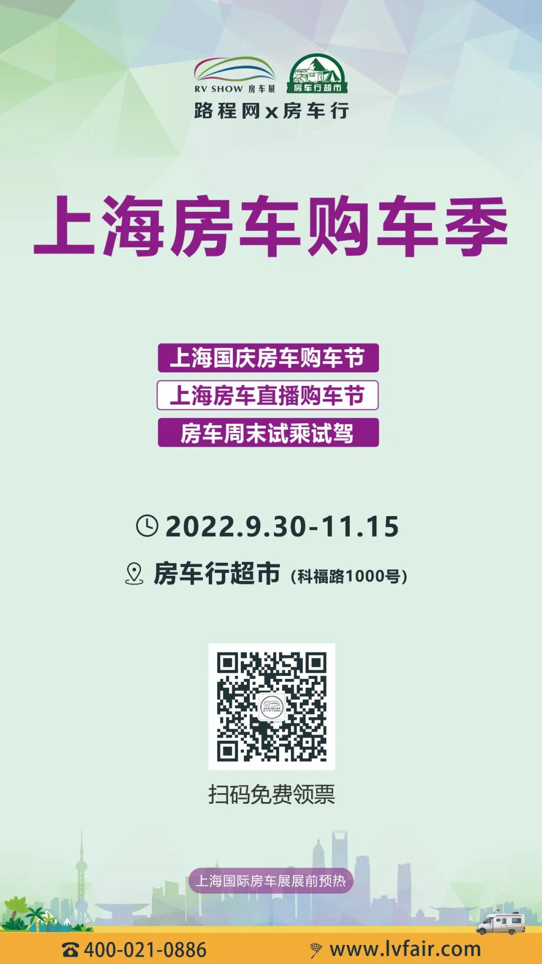 上海房车购车季分线下实体场景选车买车-上海国庆房车购车节、线上足不出户看房车-上海房车直播购车节、品牌车型免费体验-房车周末试乘试驾三阶段进行,其中房车购车节已在10月7日圆满结束,余下的时间,除了继续带大家线上线下选购房车以外,路程网x房车行还针对参与本次第十六届上海国际房车展的参展企业/厂家推出极具诱惑的参展福利。