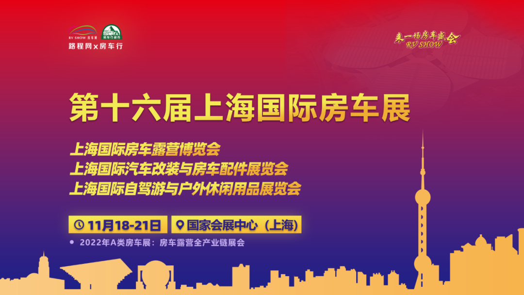2022年,虽面临“高压”,路程网x房车行仍将砥砺前行,于2022年11月18日-21日在国家会展中心(上海)举办的2022 A类房车展-第十六届上海国际房车展将持续发挥RV SHOW房车展的行业号召力及品牌影响力,在原有的展会基础上进行革新突破,深度链接房车露营全产业链行业企业,为其搭建国际性更强、合作面更广、消费者更多、参展价值更高的专业平台。