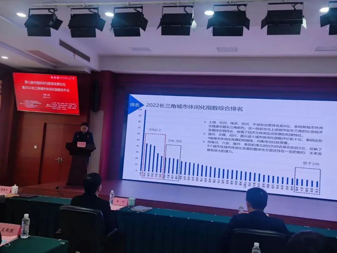 11月18日,由上海师范大学休闲与旅游研究中心、华东师范大学工商管理学院休闲研究中心、上海交通大学出版社、上海市文化和旅游事业发展中心、上海旅游高等专科学校联合主办的“第七届中国休闲与旅游发展论坛暨2022长三角城市休闲化指数报告发布会”在上海市文化和旅游事业发展中心召开。来自同济大学、华东师范大学、上海师范大学、上海交通大学出版社、上海市黄浦区文旅局、上海春秋旅行社、上海市文化和旅游事业发展中心等多家高校、智库、文旅企事业单位及媒体的嘉宾参加了论坛。会上发布了《2022长三角城市休闲化指数》报告,由上海师范大学休闲与旅游研究中心和华东师范大学工商管理学院休闲研究中心联合组成的课题组共同编制完成,是公开发布的第四份有关长三角区域层面的城市休闲化指数研究报告。