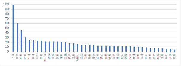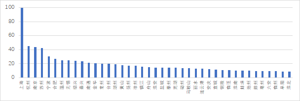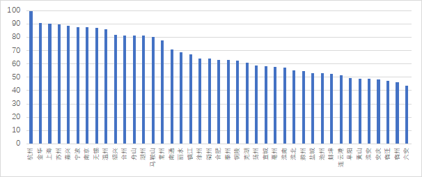 第二,休闲服务与接待指数,城市的休闲文化、娱乐、旅游等设施是重要的休闲消费场所,接待规模是城市休闲吸引力的重要表现。在该类指数排名中,上海、杭州、苏州、南京、宁波进入前5位,表明5个城市在文旅新业态的发展和休闲新消费发展方面做出了有益探索,形成了休闲文化产业规模和结构的相对优势。而宿州、亳州、滁州、淮北和阜阳位居后5位,虽然以上城市在文旅资源方面有各自的特色,但受到经济和人口规模等因素的制约,在休闲化整体性发展方面还存在一定薄弱,影响了休闲服务与接待类别指数的排名。