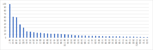 第五,交通设施与规模指数,交通设施与规模是城市休闲化发展的基础条件。从该类指数看,上海、苏州、南京、杭州和温州排名前5位。交通条件完善,交通枢纽功能强大,使得上述城市居民在本地日常的休闲活动与外来游客在当地的旅游观光活动能够互动协调发展。而宣城、马鞍山、铜陵、淮北和池州位居最后5位。上述城市交通设施与规模评价指数相对较弱,对本地居民从事日常的休闲娱乐活动以及外来游客开展观光度假活动都会产生相应的抑制作用。