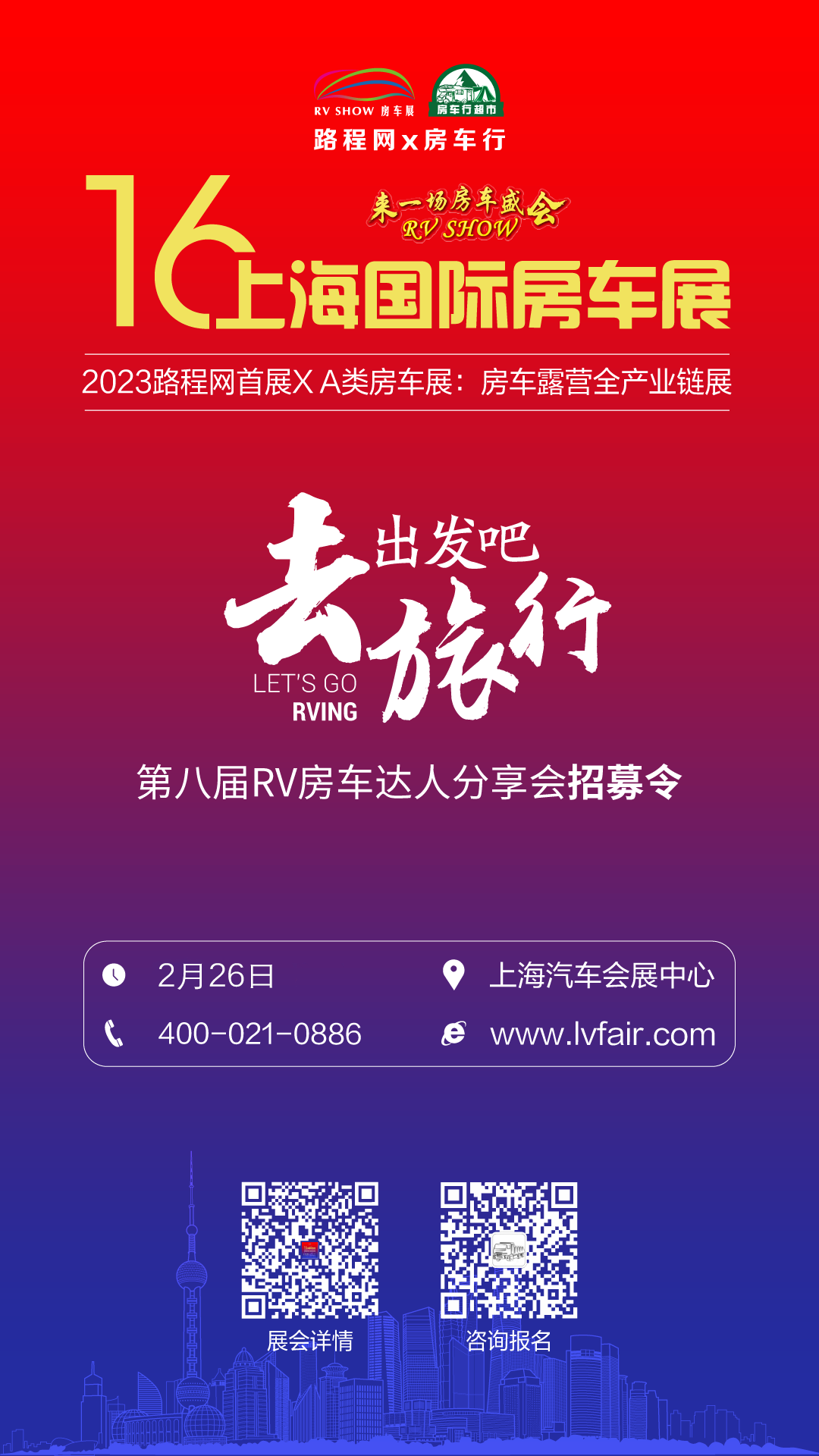 作为路程网x房车行2023年首展,以及上海2023年首个A类房车展,于2023年2月24-26日在上海汽车会展中心举办的第十六届上海国际房车展,将在疫情放开后的全新一年,以更饱满、更精彩的面貌与大家相见,并继续发挥上海房车展身为行业风向标的引领作用,持续发挥RV SHOW房车展的行业号召力及品牌影响力,在原有的展会基础上进行革新突破,深度链接房车露营全产业链行业企业,为其搭建国际性更强、合作面更广、消费者更多、参展价值更高的专业平台。