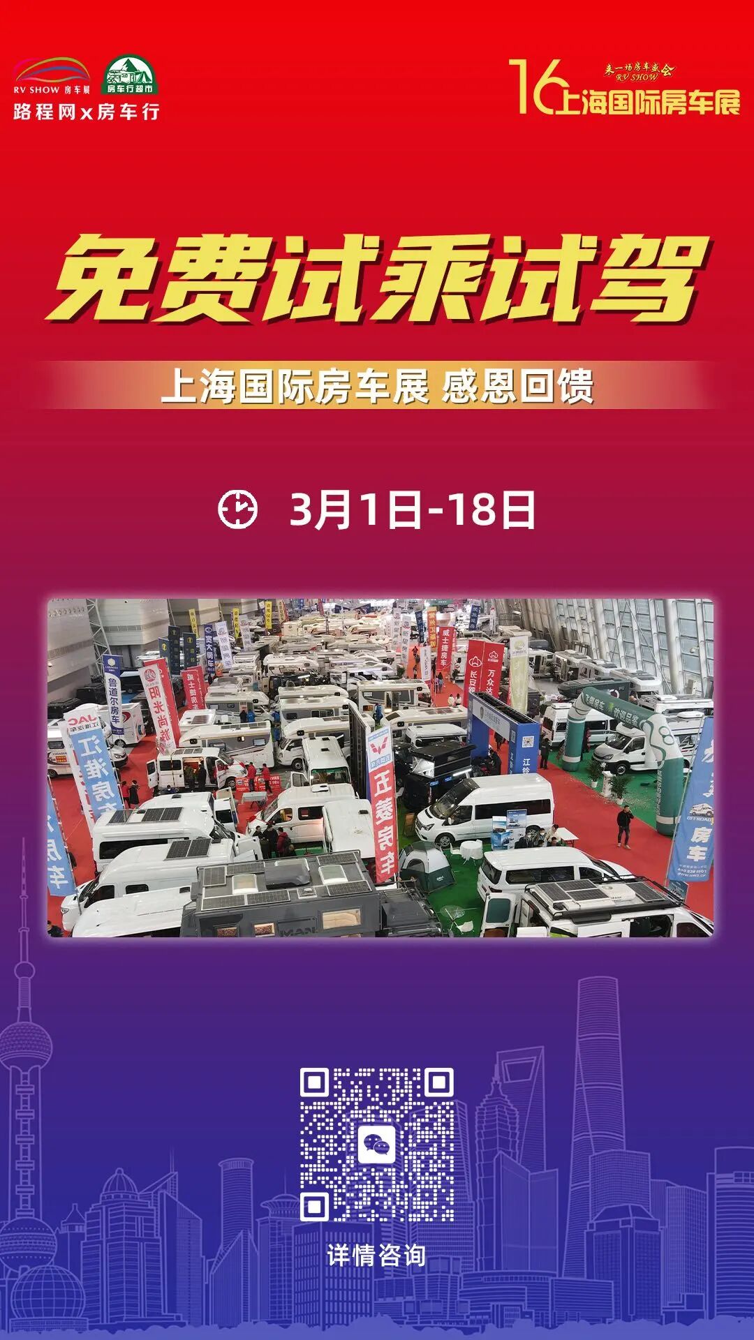 还等什么呢?赶快预约报名,2023年3月1日-18日,上海国际房车展感恩回馈,百余款房车等你免费试乘试驾!