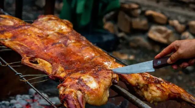 正宗草原烤全羊:不足16人为烤羊腿或羊排,人均半斤标准,观赏蒙古族马头琴及呼麦