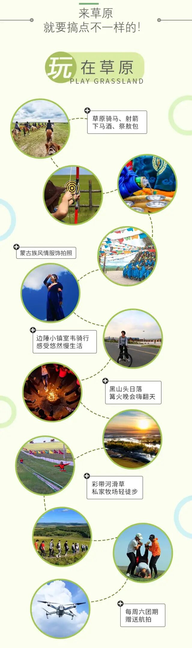 民俗深度:下马酒、祭敖包,穿蒙古服饰,骑马射箭,体验草原游牧文化,深入美景人文深度结合。