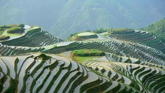 一层层梯田似一圈一圈年轮,最早的龙脊梯田是近千年前的龙脊先民用血和肉砌出来的。