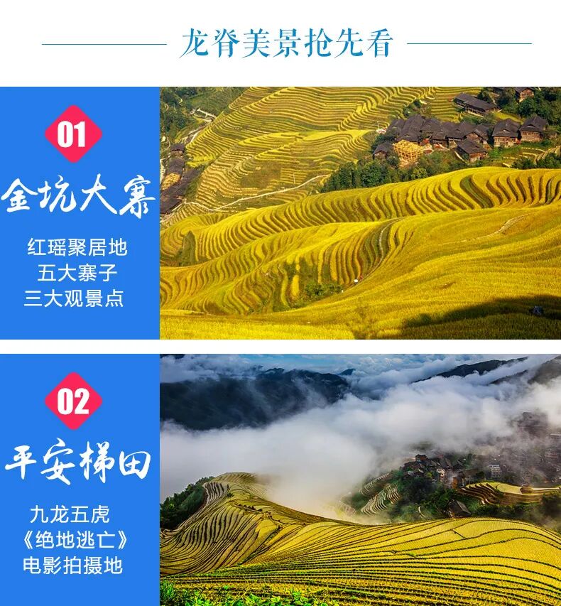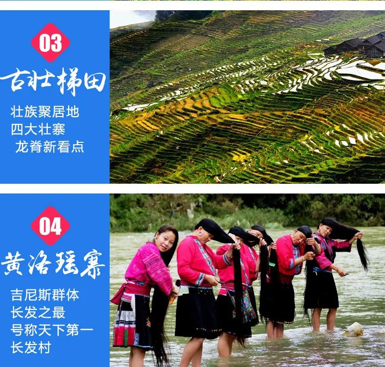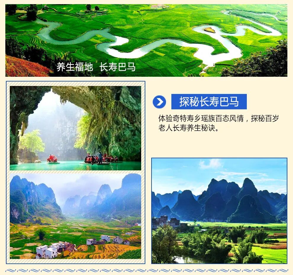 1、网罗桂林阳朔、龙脊梯田、巴马长寿乡、德天瀑布、万尾金滩、北海银滩、涠洲岛,广西全境游,体验绿色纯净真旅行;