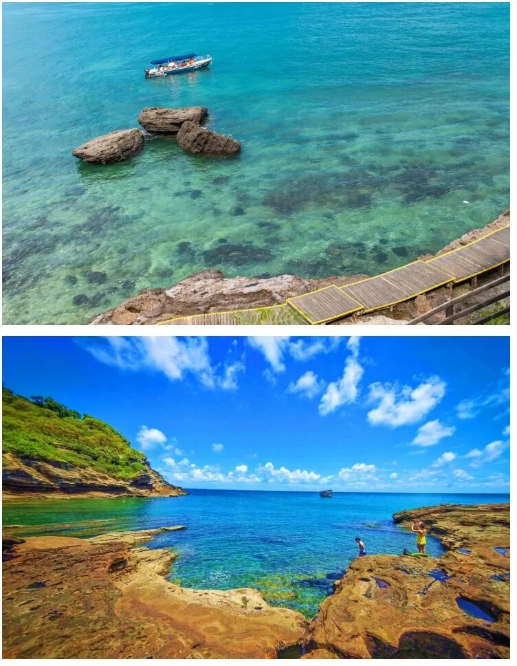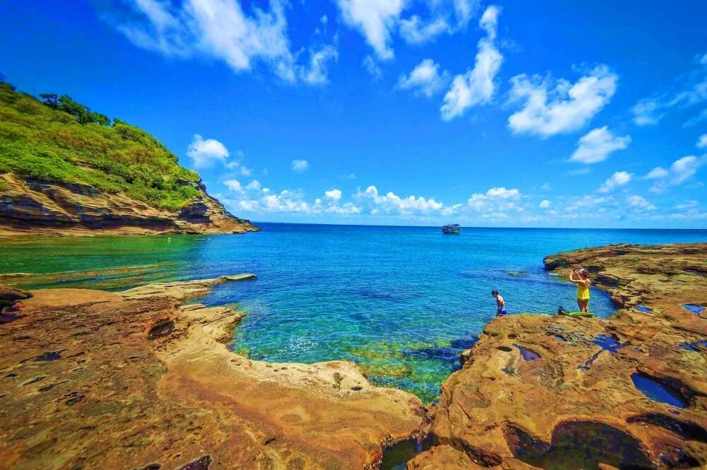第十天:北海—乘船90分钟—涠洲岛—酒店—租电瓶车骑行(自费)—贝壳沙滩—石螺口海滩—五彩滩—滴水丹屏,住涠洲岛;