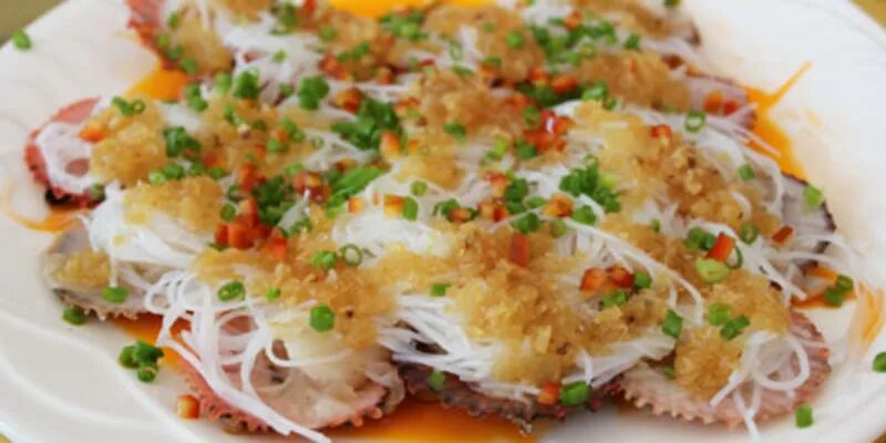 材料:扇贝、粉丝、葱、蒜、盐、味精、油做法:将扇贝里外清洗干净,浸泡粉丝,泡软后切碎,剁蒜成泥,葱切碎,把粉丝和蒜泥和葱用盐、味精、油搅拌均匀,然后把料搁在扇贝上,每个都放一点,注意不要溢出来,放在锅上蒸五分钟左右,取出来以后,在上面淋点热油。口感风味:鲜美细嫩营养价值:健脑明目、健脾暖胃、润肠通便、养颜护肤、抗癌。