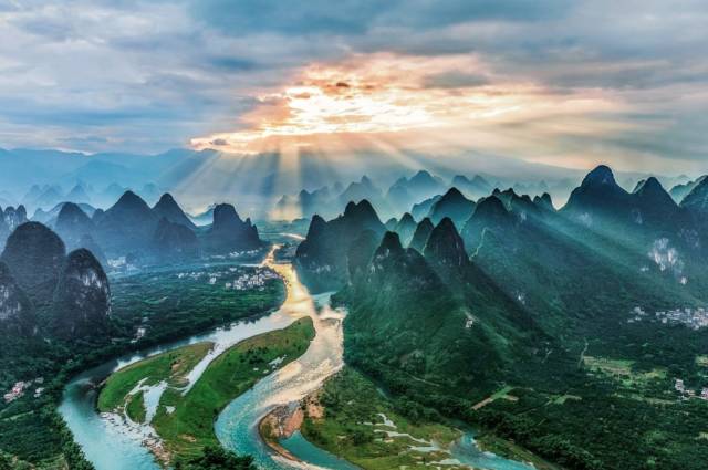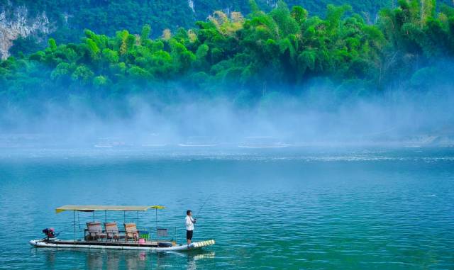 不同天气下,漓江更是风味多姿,晴天,青峰倒影。阴天,漫山云雾。雨天,烟雨如梦。阴雨天的漓江更有韵味,但见江上烟波浩渺,群山若隐若现。浮云穿行于奇峰之间,雨幕似轻纱笼罩江山之上。