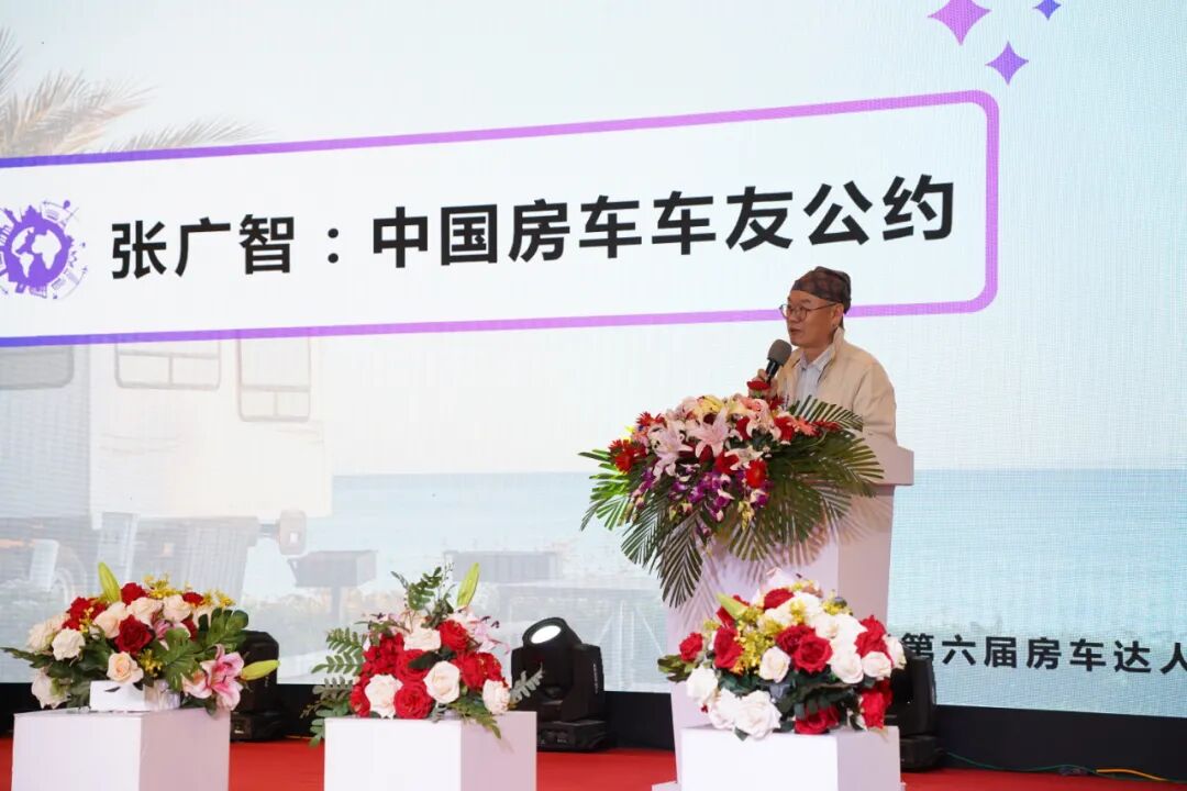 分享会现场首次公布了《中国房车车友公约》,作为倡议书的发起人,张广智先生针对《中国房车车友公约》倡议书的内容给大家做了详细的介绍,并号召广大车友共同遵守公约内容,共同打造良好的房车旅行环境;
