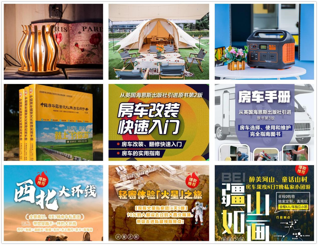 房车周边超市主要涵盖房车租赁旅游、露营装备、户外休闲用品等相关内容,并线上宣传下单+线下参观体验的电商新零售模式,线上渠道将通过路程网x房车行全媒体平台、微店、小程序等途径进行全面的推广宣传,线下渠道将通过展会、团购及合作运营的门店进行参观体验。