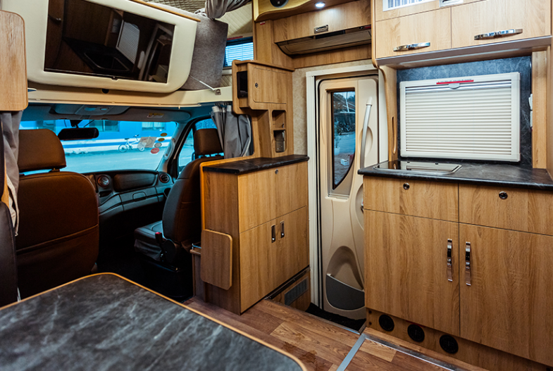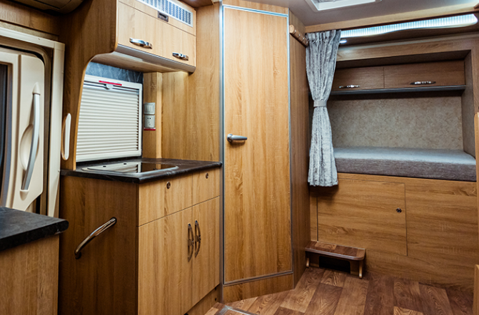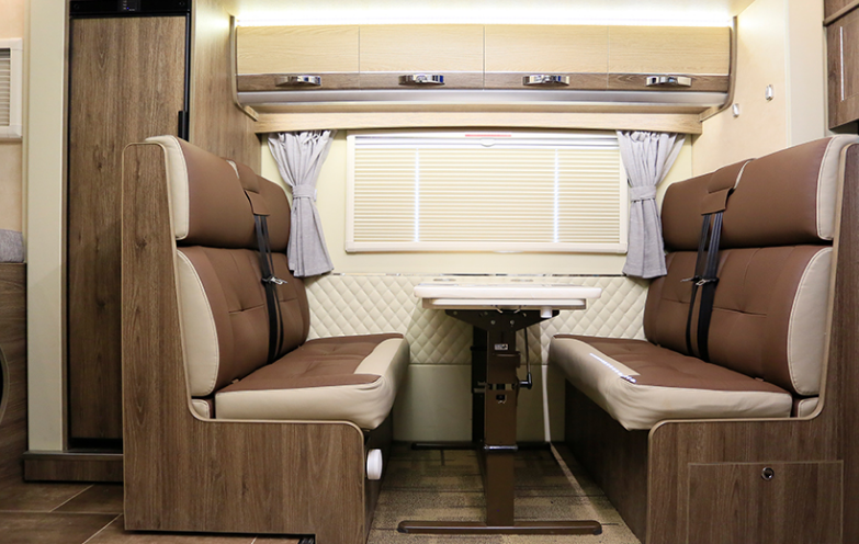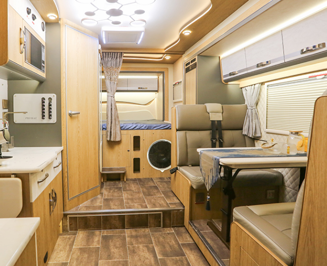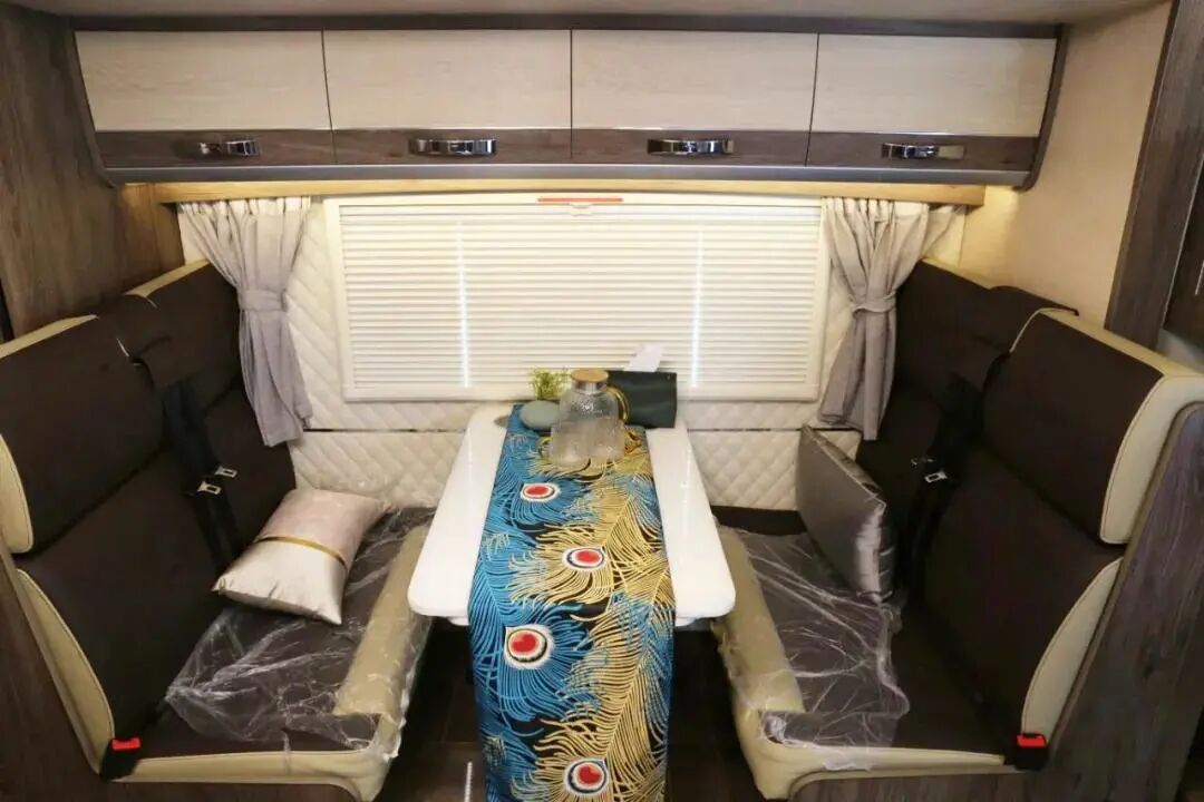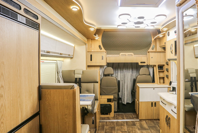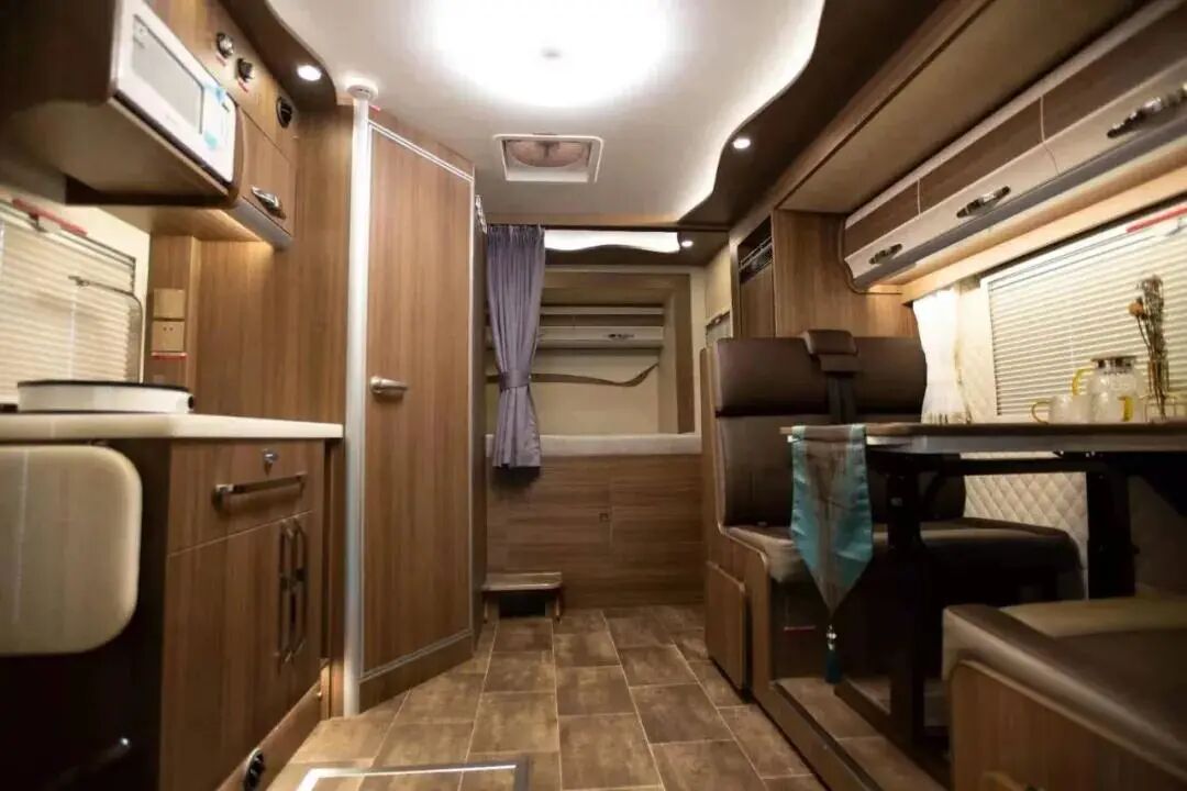 ● 整车家具采用环保家具板材,圆弧造型设计,降低碰撞危害;