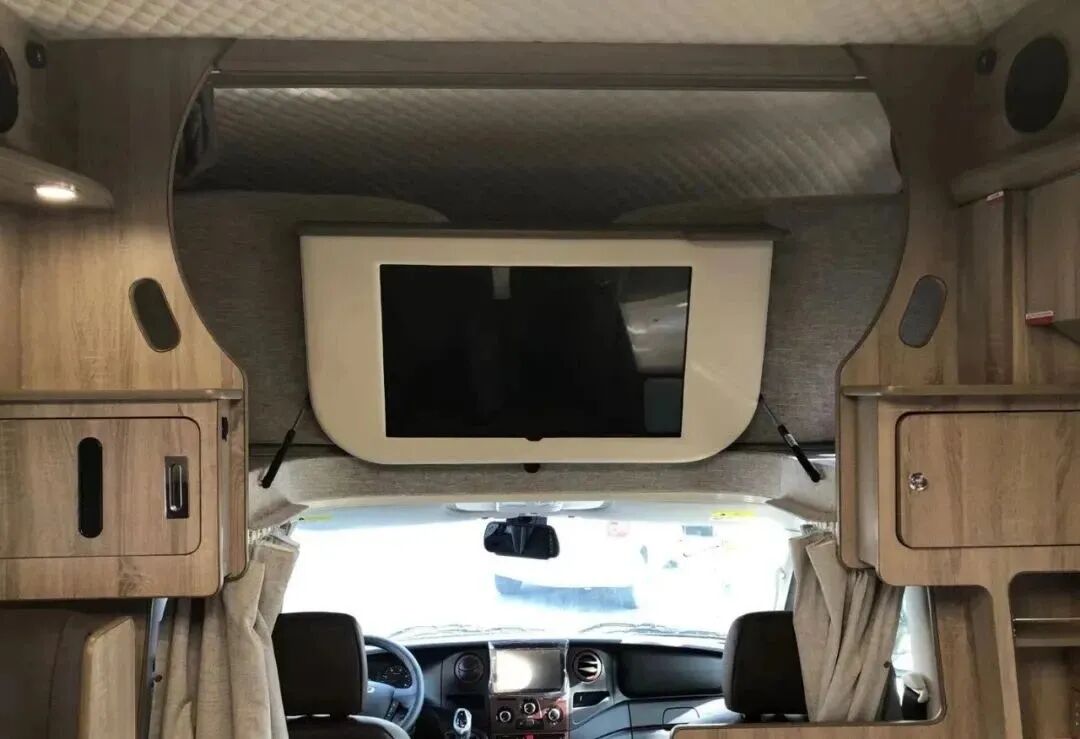● 车内配有24寸互联网电视、JBL音响、三菱1.5P静音空调、150L冰箱等电器,同时搭载智能控制系统,给您的生活增添乐趣;