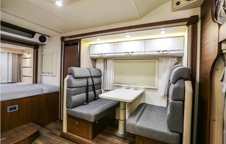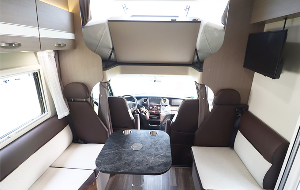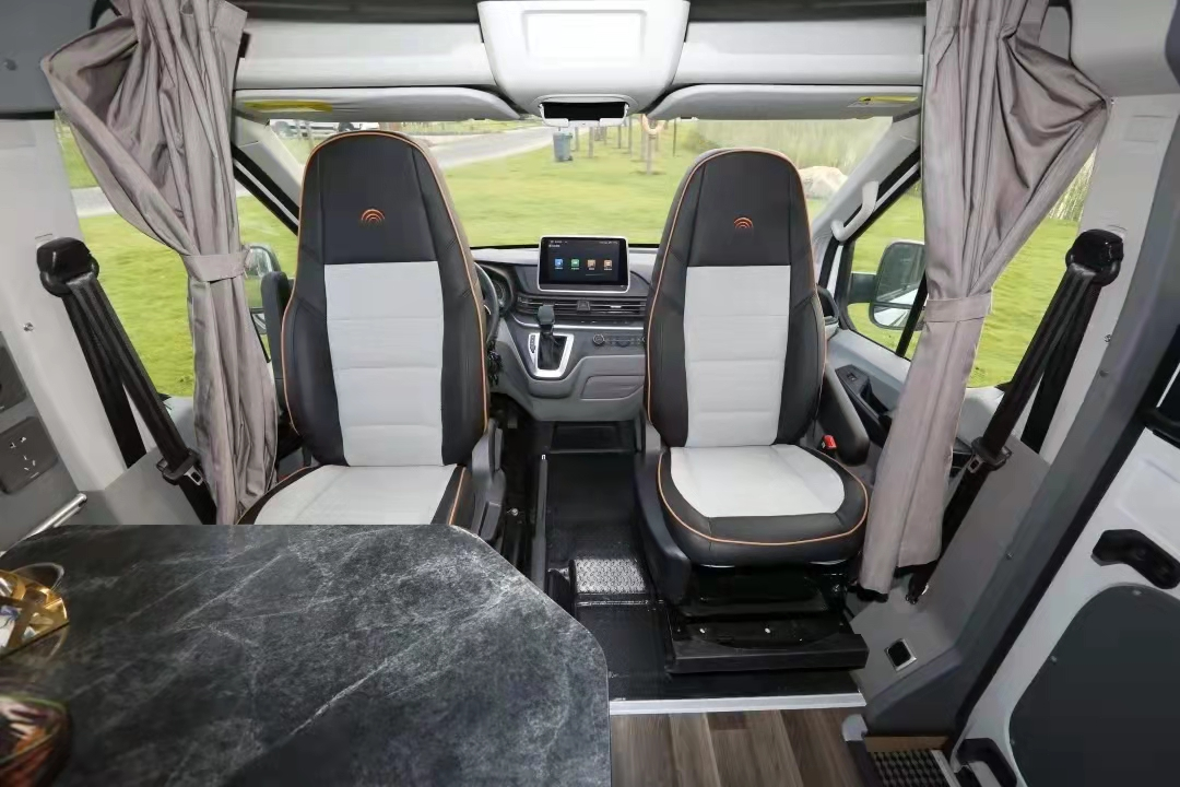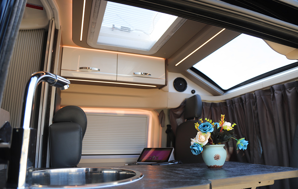 ● 前部弧度全景玻璃天窗、乘客区天窗、睡卧区天窗三天窗设计,保证车内通风采光;
