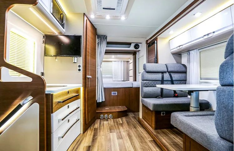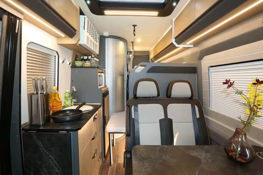● 电器产品配备90L冰箱、微波炉、900W电磁炉、12V空调、19寸电视等,满足日常娱乐、烹饪等需求;