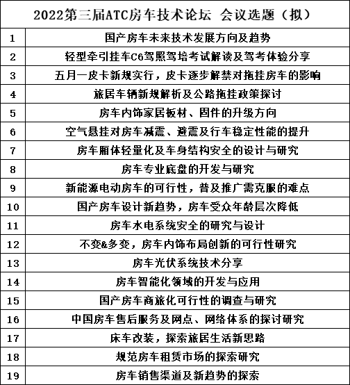 在此背景下,路程网x房车行继2019首届、2021第二届房车技术论坛后,再次联合ATC汽车会议论坛,计划在2022RTRV SHOW南京国际房车露营与自驾游博览会现场举办2022第三届中国房车技术论坛。