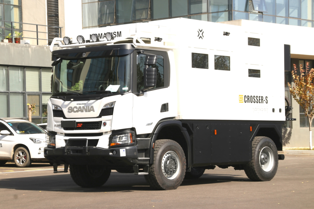 斯堪尼亚新款P500 6×6 XT系列底盘打造,帅气的造型配上高冷灰的涂装,让颜值更上一个档,车身外尺寸为11000x2500x3950mm; 宽敞的双排驾驶室设计,考虑到每位出行人员乘坐感,贴心的设计了带有扶手和空气悬挂的独立座椅。