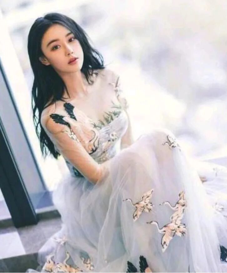 张馨予加持立体刺绣仙鹤轻蔓纱礼裙,没有任何饰品修饰下,美感呈发散状,美出了不食人间烟火之感。