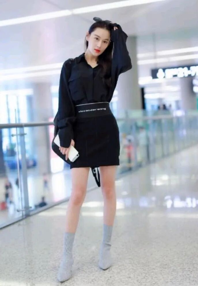 张馨予身穿黑色衬衣花边设计高腰包臀裙,腰封处的设计融合了字母以及灰白线条,打破了黑色的厚重感,让衬衣包臀裙有了亮点,很是摩登时尚。
