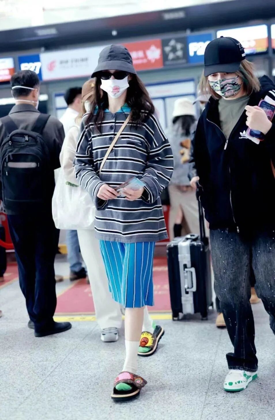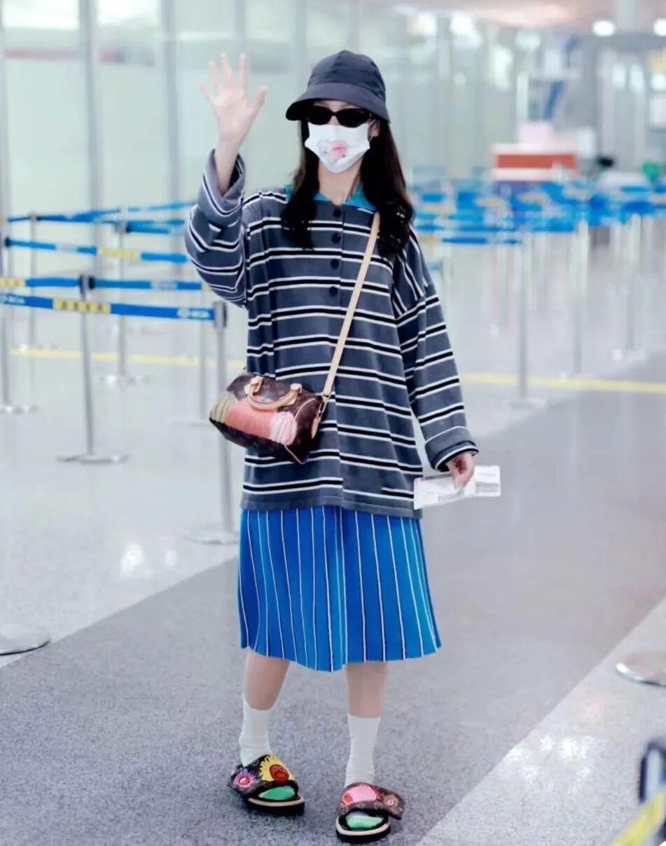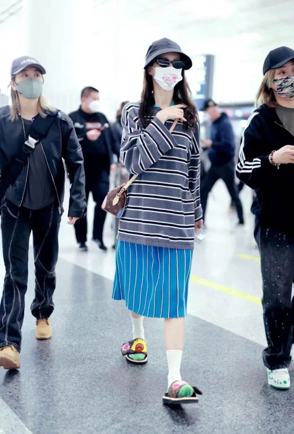 金晨最近的一套穿搭令人感到十分的新潮,采取灰色的棉服T恤,搭配深蓝色的长裙,穿搭中也有许多令人眼前一亮的矛盾点,中性风的老头衬衫自带一种元气满满的效果,而深蓝色的条纹半裙搭配棉布拖鞋,是很多女生不常见到的穿搭,平常女生都可以进行借鉴和学习。