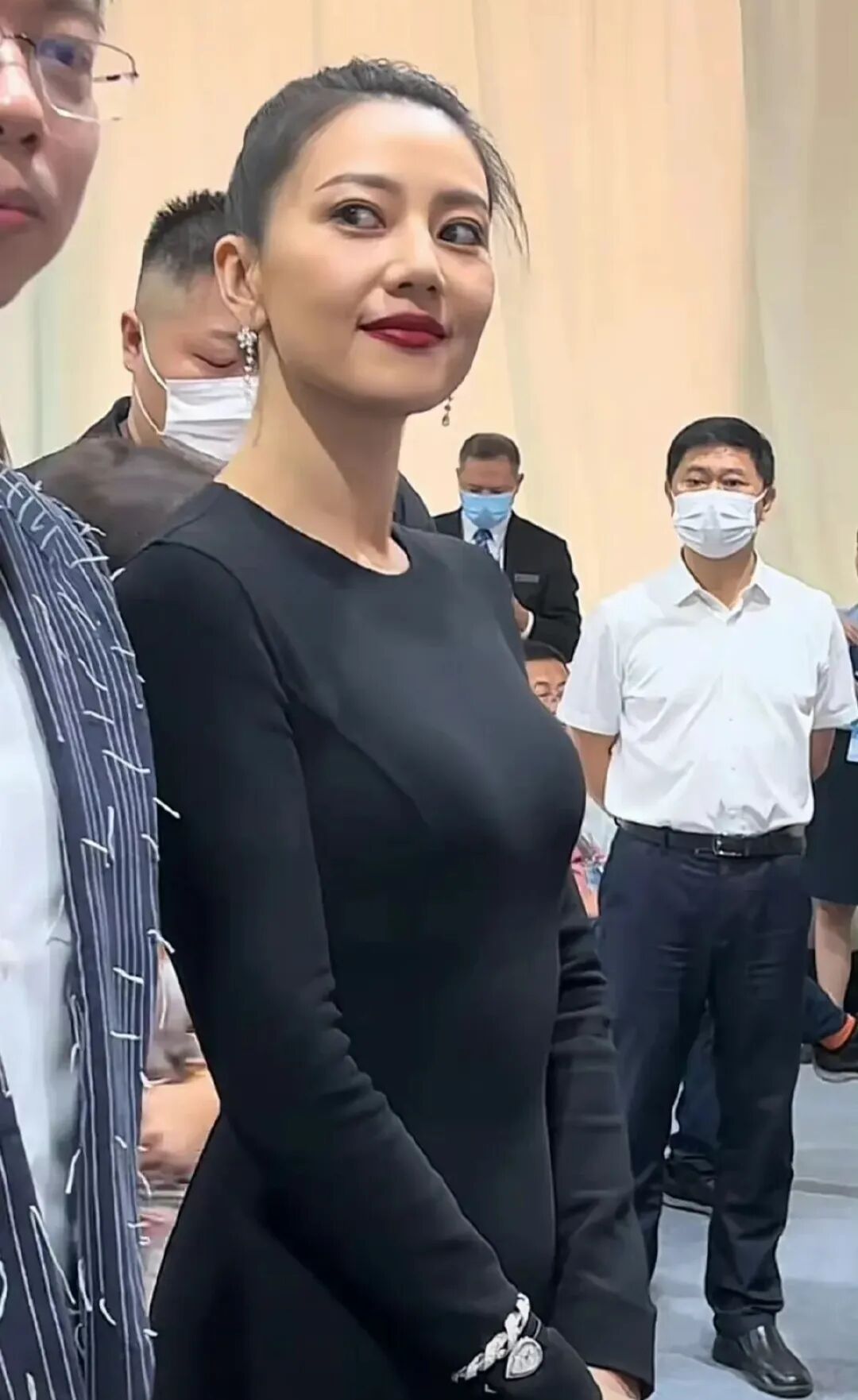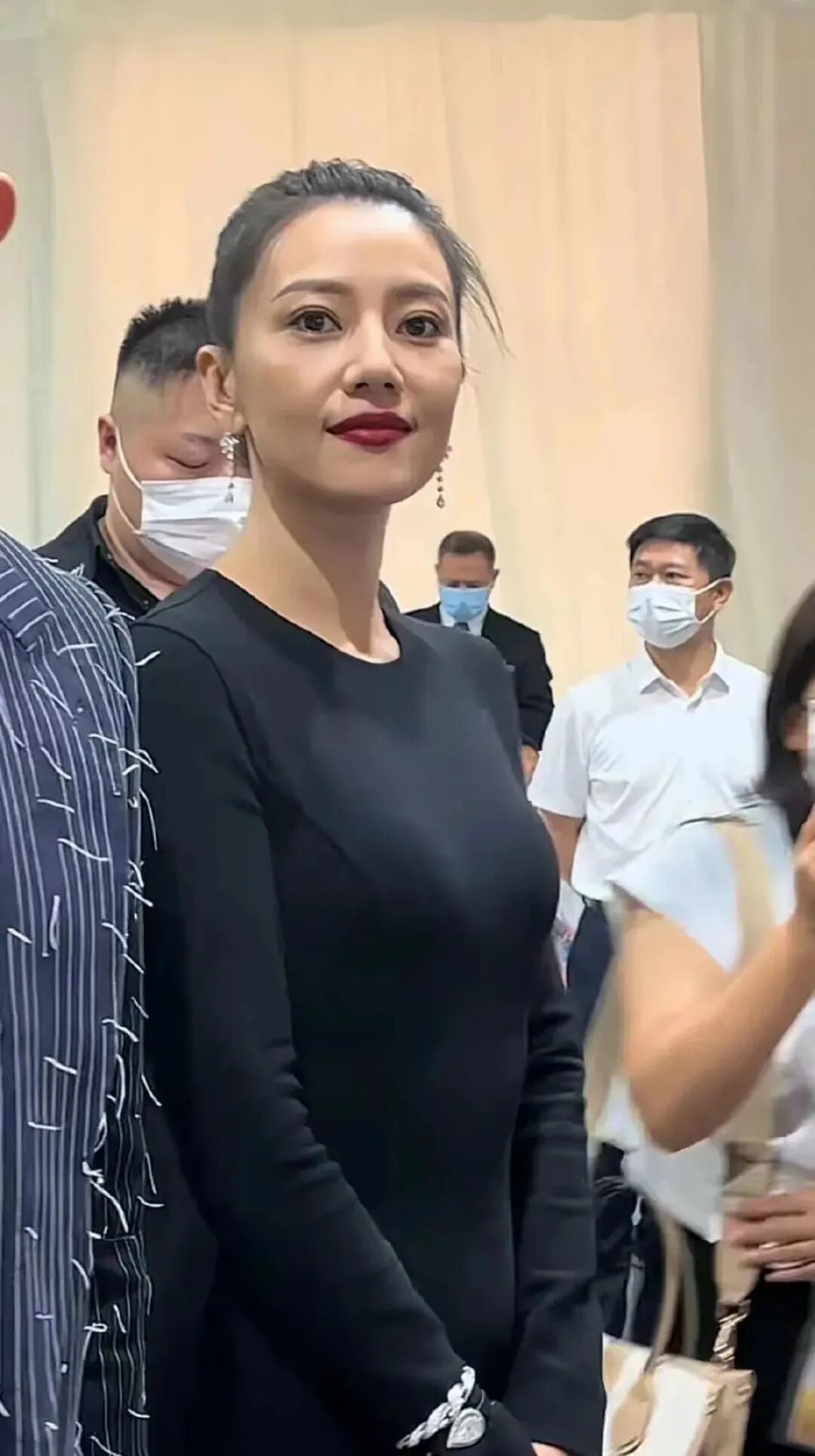 高圆圆加持黑色营造出的视觉效果刚刚好,气质出众,身材顶级,中年女明星营造出的美感也可以媲美年轻女明星。
