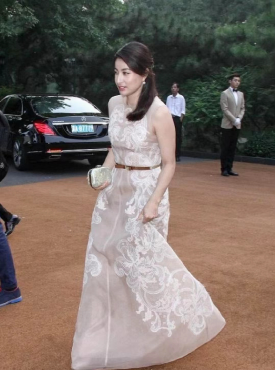 郭晶晶加持肉色鎏光团案刺绣礼服,如果不看脸和发型,这身穿搭堪称是满分穿搭。