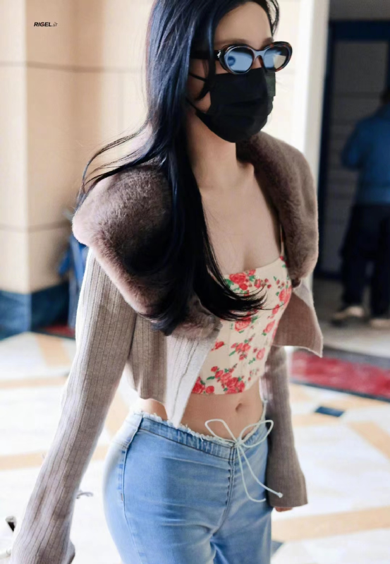 慵懒的长发,酷黑的墨镜,遮面的黑口罩,让虞书欣看起来美中又平添了许多的飒爽之感,又美又飒应该就是虞书欣呈现出的气质。