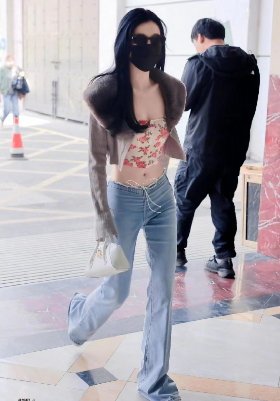 虞书欣下半身选择的是做旧款紧身牛仔裤,从这一单品选择来看,虞书欣对于自己的腿部线条和臀部轮廓相当自信,这条牛仔裤像极了有魔法,让虞书欣看起来极其性感,极其撩人。