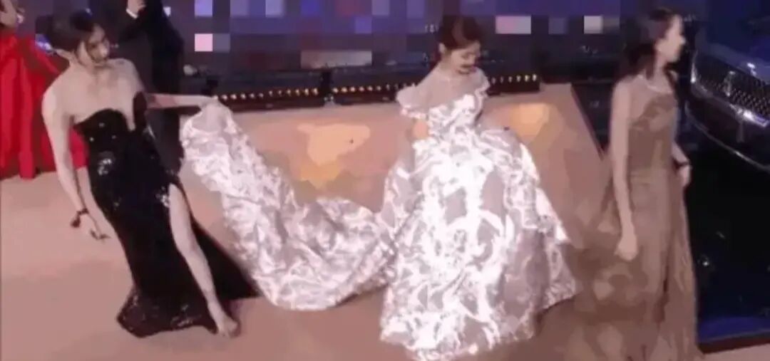当时两人一起走上台,毛晓彤穿的是一件尾部拖着很长的裙子,或许是走路不方便,江疏影看到后,就默默的托起她的裙尾,跟在她的身后走上台。