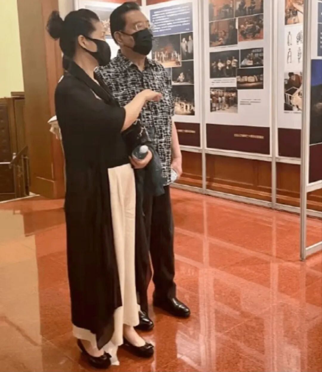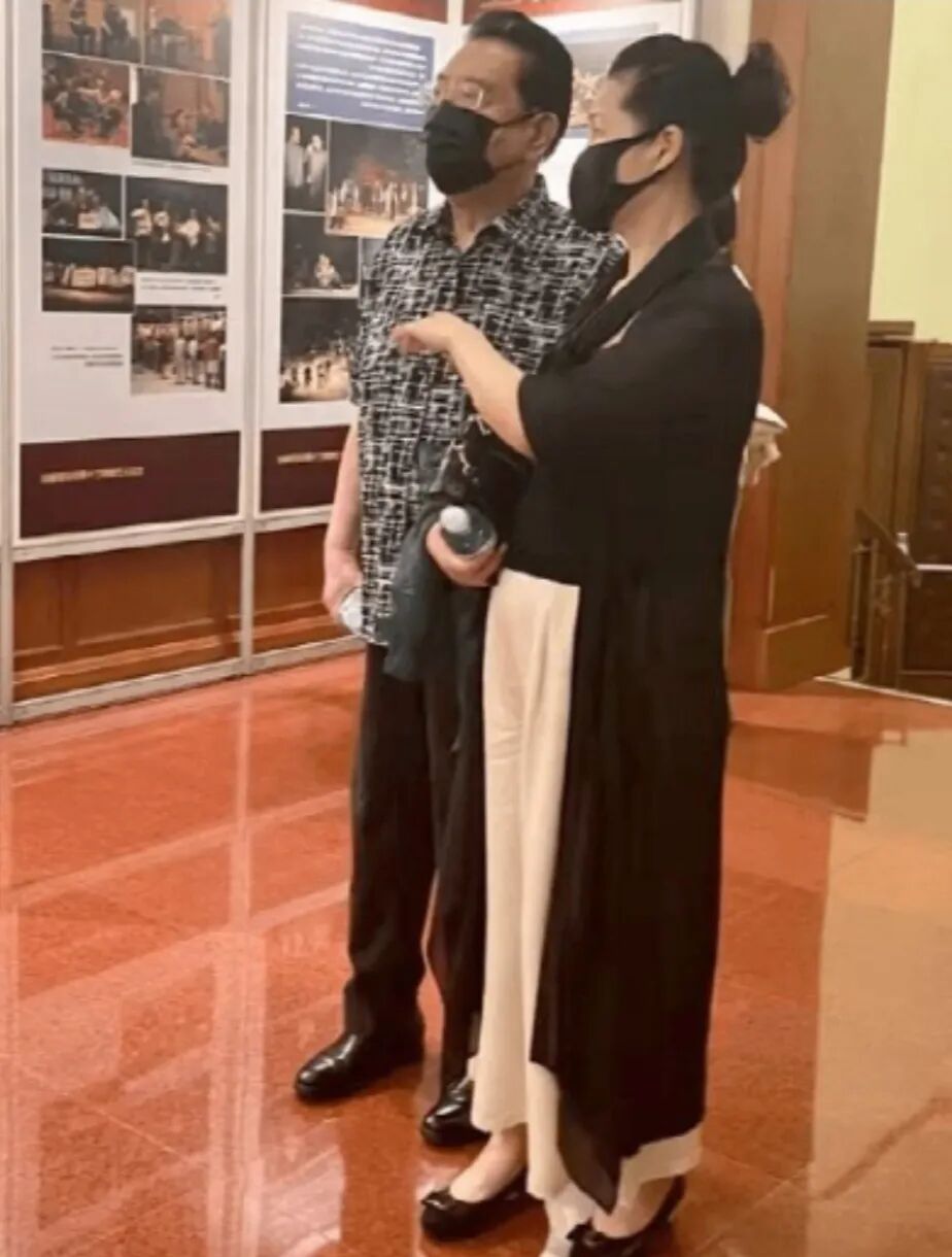 穿着一件黑白斑点的花衬衫,西裤加皮鞋,看起来非常的时尚,大背头可能是染了颜色,油光闪亮的,整体看上去减龄不少,最多像是60多岁。和梦鸽站在一起,非常的般配。