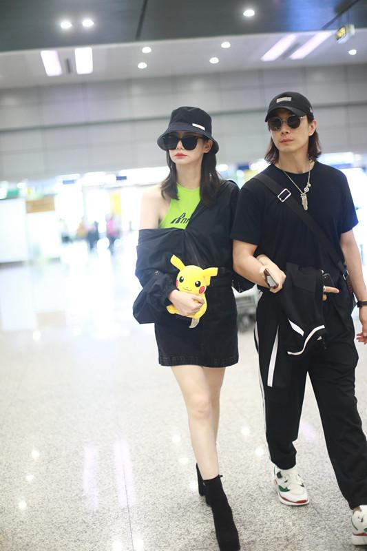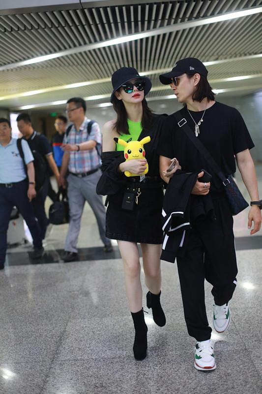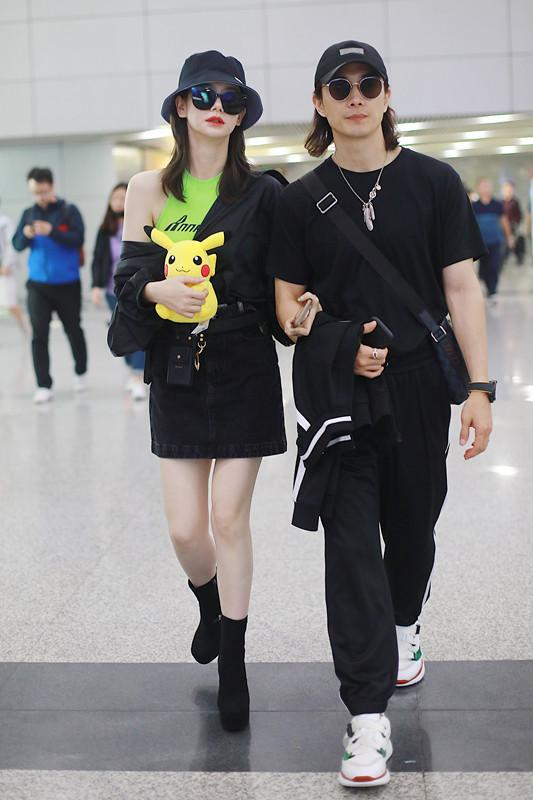 这一次他们一起出现的时候,戚薇穿着一身黑色的短裙,搭配上黑色的短靴,李承铉则是穿着黑色短袖T恤,搭配黑色的长裤,这套穿搭有情侣装的风范,从颜色上来看也是相似的。