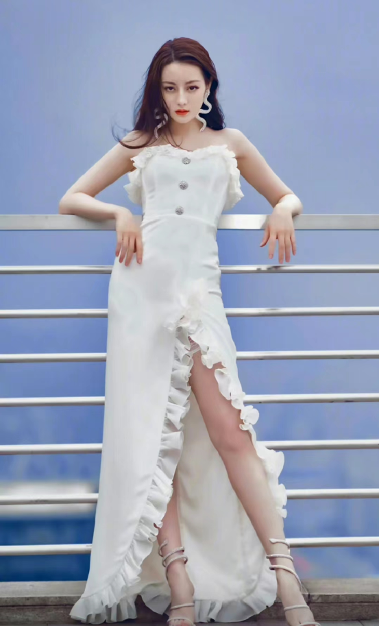 迪丽热巴是唯一一个诠释复古元素无需考量的女明星,她将复古宫廷花边抹胸高开叉裙之美,诠释地淋漓尽致,又性感又妖娆。