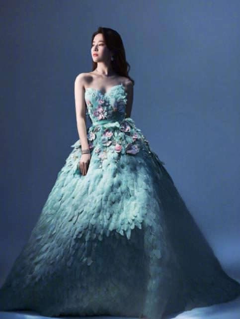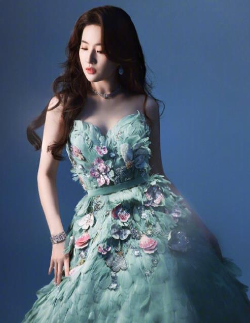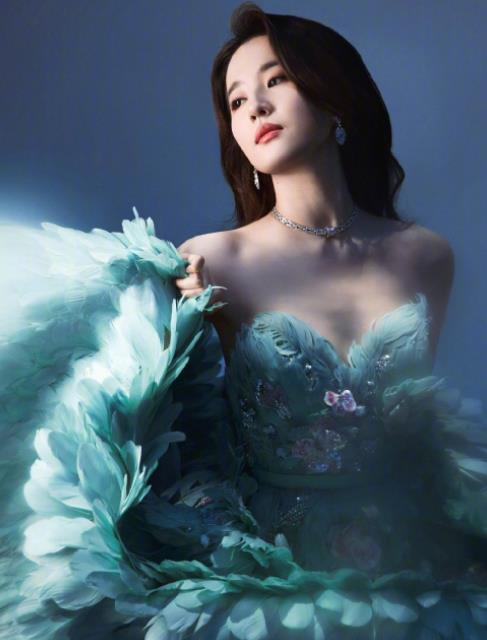 刘亦菲皮肤白皙且光滑,也正是如此,她加持孔雀绿才能营造出最具美感的视觉效果,让大众尽享视觉盛宴。