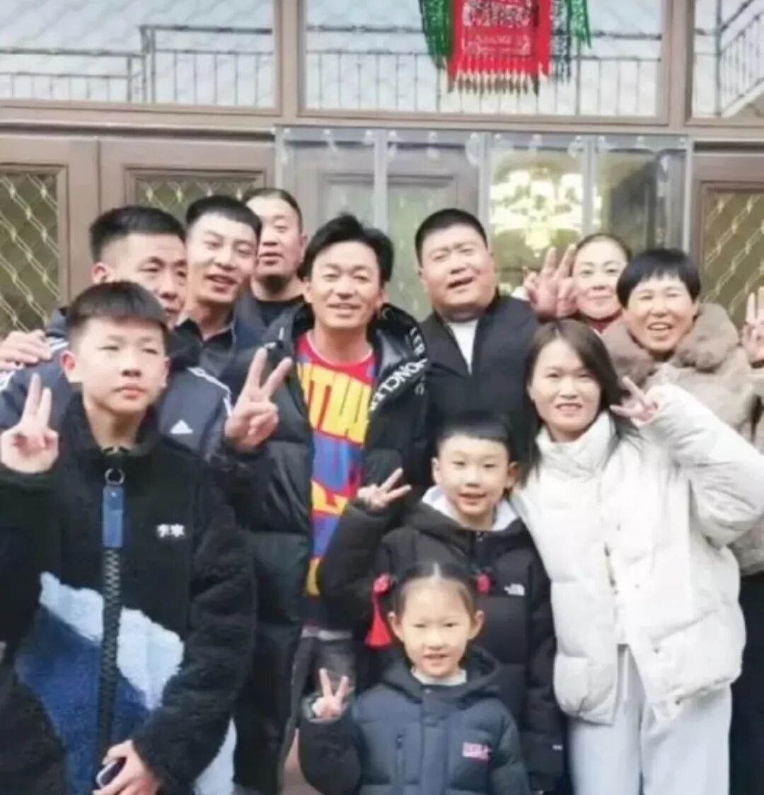 和老家的人合照,王宝强笑得很开心,有钱了不忘本,这才是成功人士该学习的。