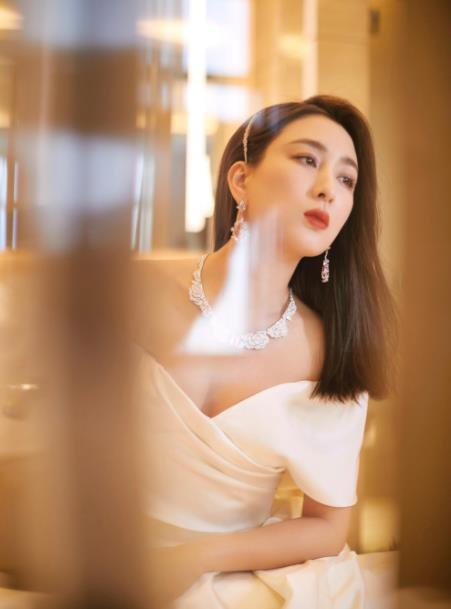 白色的复古风礼服+宫廷款高奢项链、耳饰、发饰,马苏有新娘子的既视感,只不过不知道马苏的新郎到底在哪里?会不会很快出现在马苏身边?