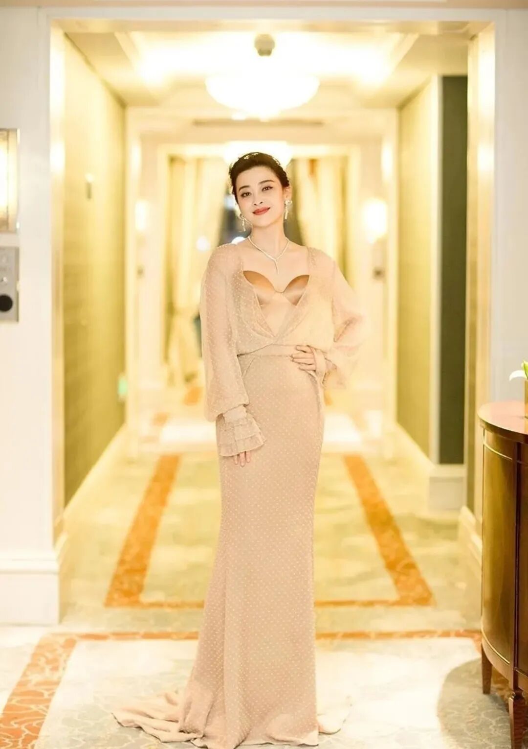 林心如轻蔓纱高贵金礼服,华丽且飘逸,视觉效果非常唯美,颇有仙气飘飘之感。