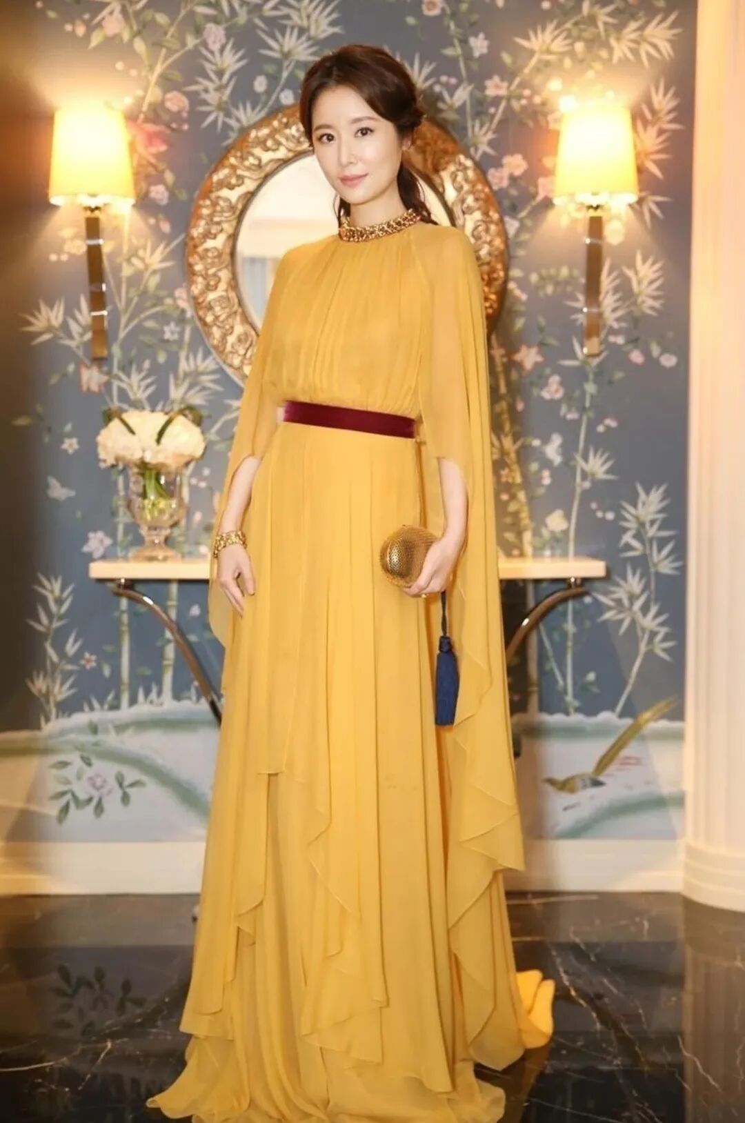 金色自带贵气,轻蔓纱质感超凡脱俗,我们在加持单品的时候,可以选择和林心如一样的材质和颜色,如此便可以在芸芸众生当中脱颖而出,成就最美最华丽最有气质的自己。